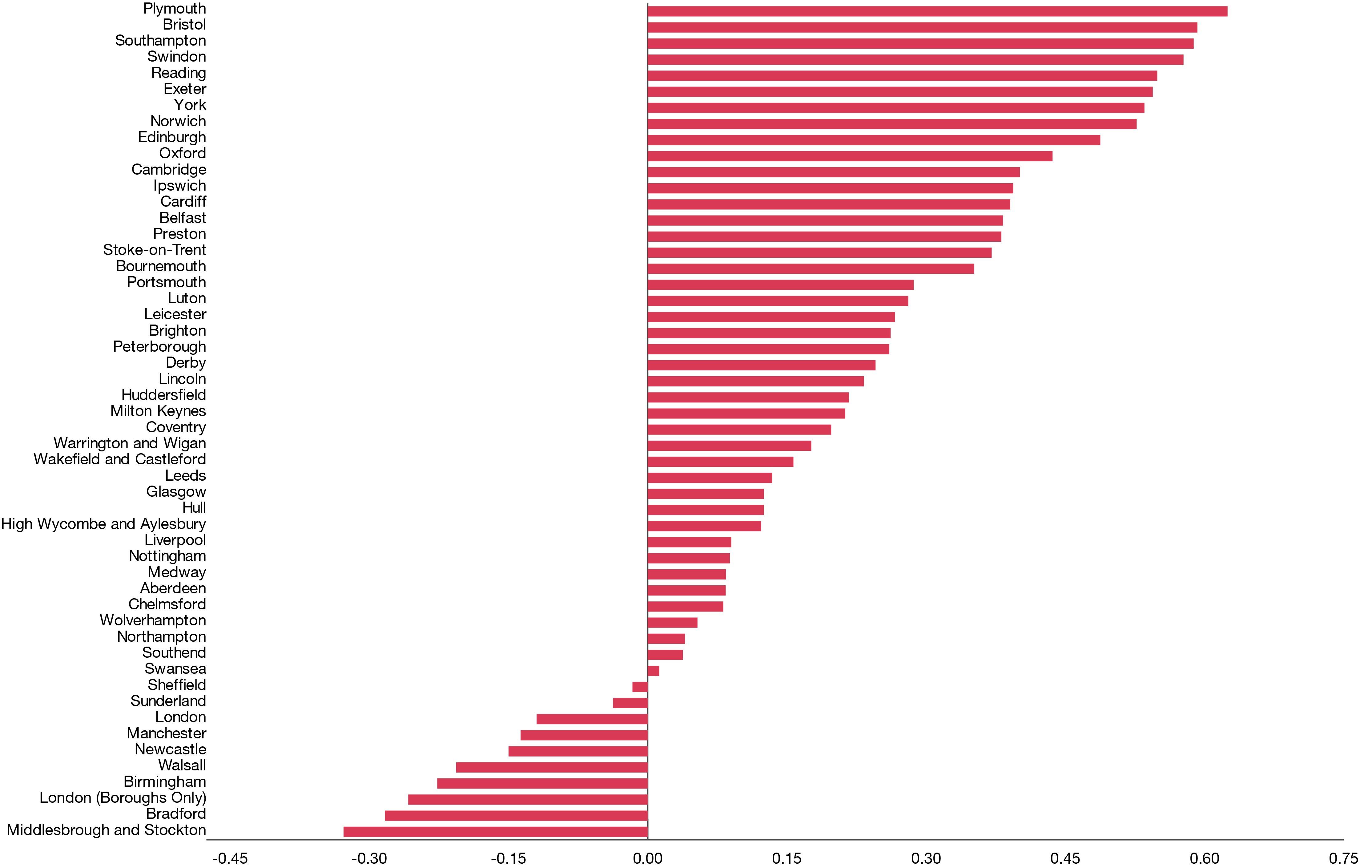 Some of the current Index's best performing cities, such as Plymouth, Bristol and Swindon, are forecast to have relatively average outlooks for 2024, consistent with lower performing cities such as Walsall, Birmingham and Nottingham.