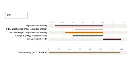 Germany recorded the highest rate of decarbonisation in 2019 but that rate would still need to nearly double to be consistent with a 1.5°C trajectory. At the other end of the spectrum, South Africa and Indonesia recorded an increase in carbon intensity for the second consecutive year.