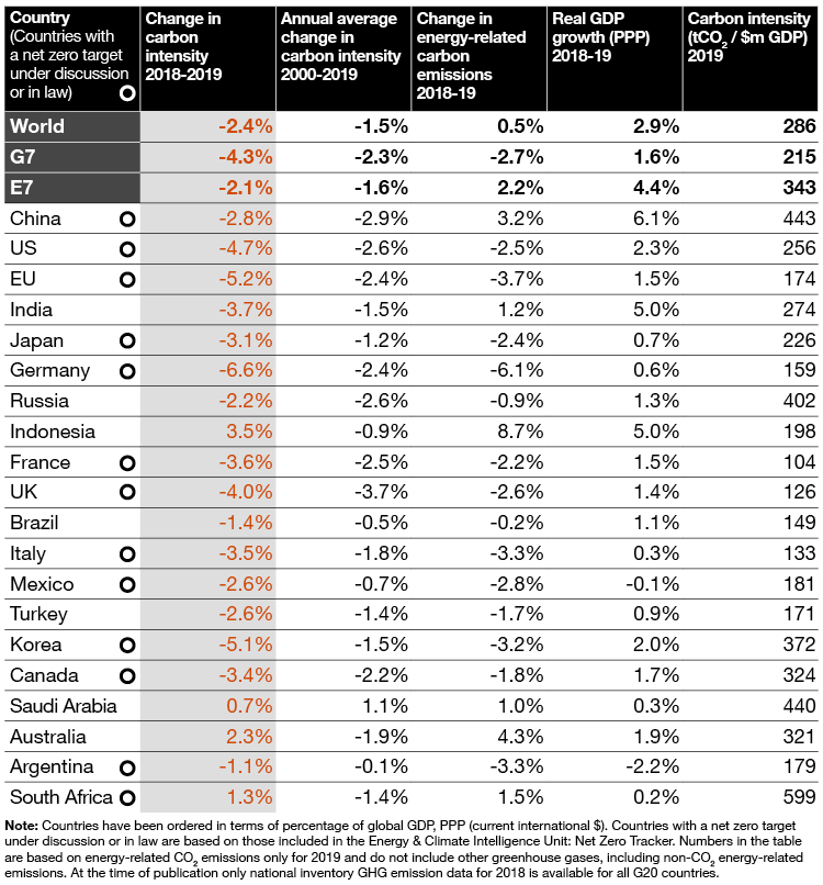 Table 1: Net Zero Economy Index 2020 – G20 Performance Summary