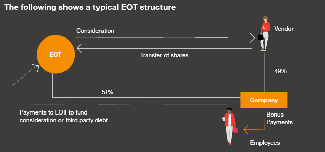 On setting up an EOT, funding will be required in order to allow the purchase of shares from the existing owners. The vendor will often be paid for their shares out of future income generated by the Company.