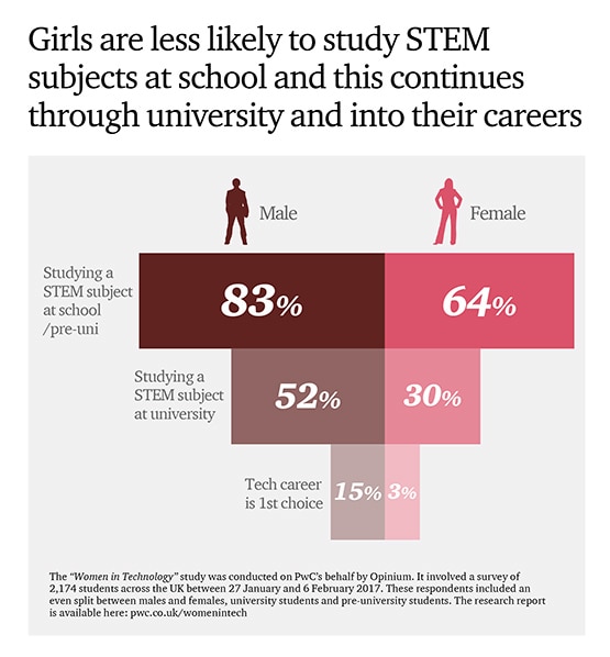Our research with over 2,000 A-Level and university students shows that the gender gap in technology starts at school and carries on through every stage of girls’ and women’s lives.